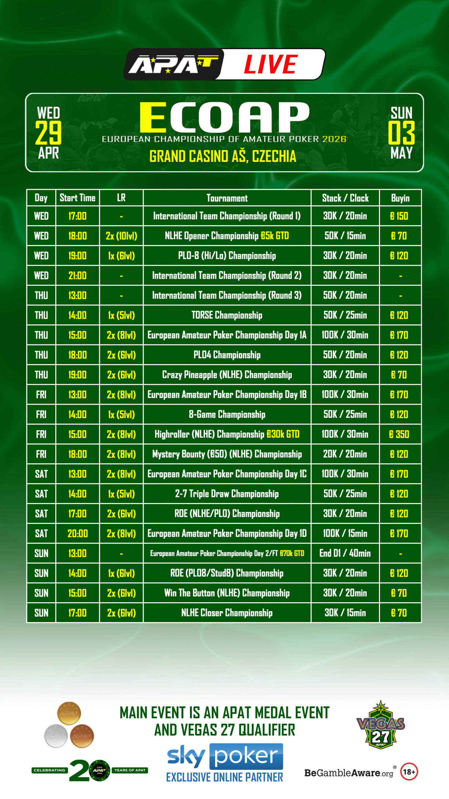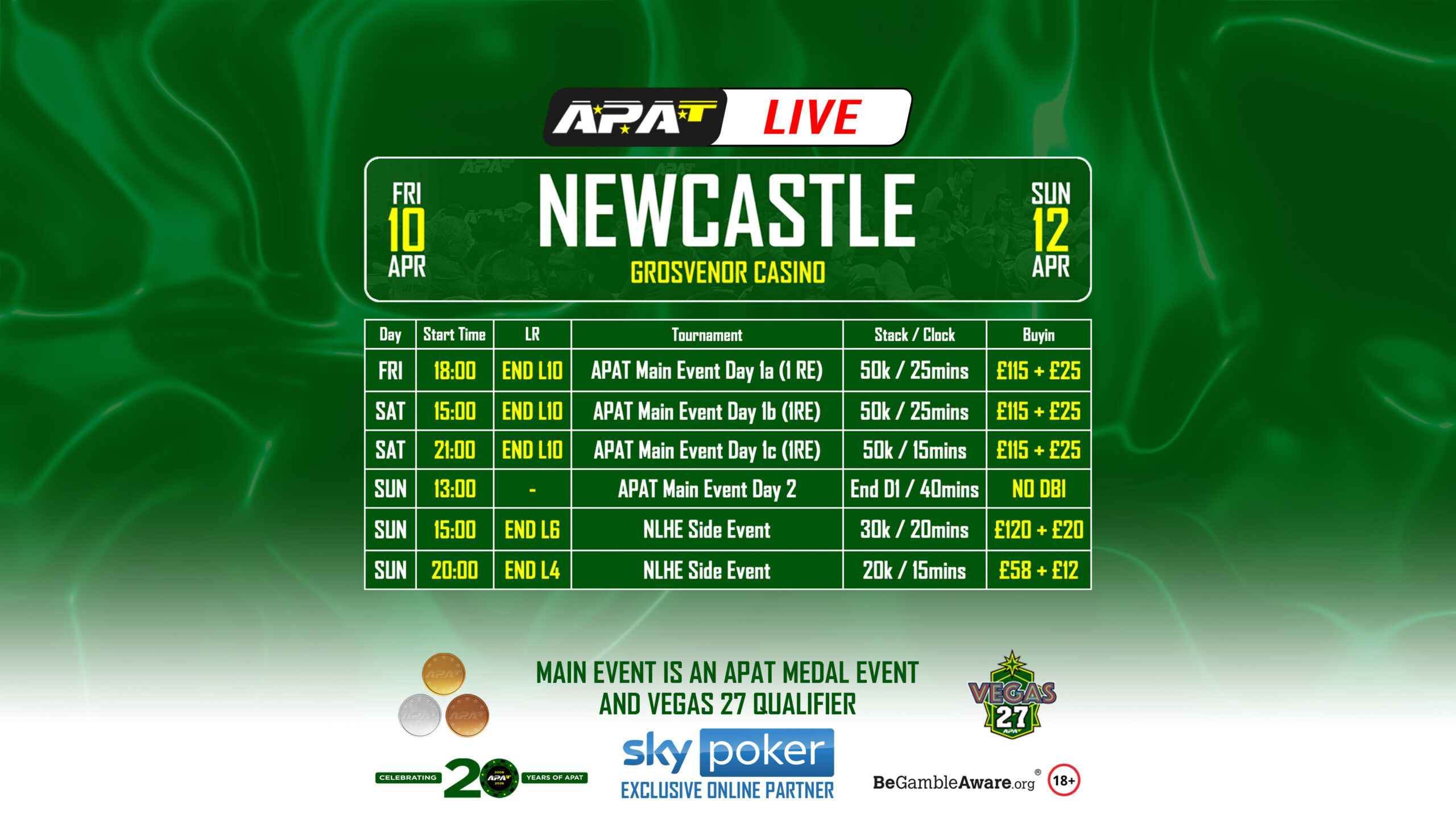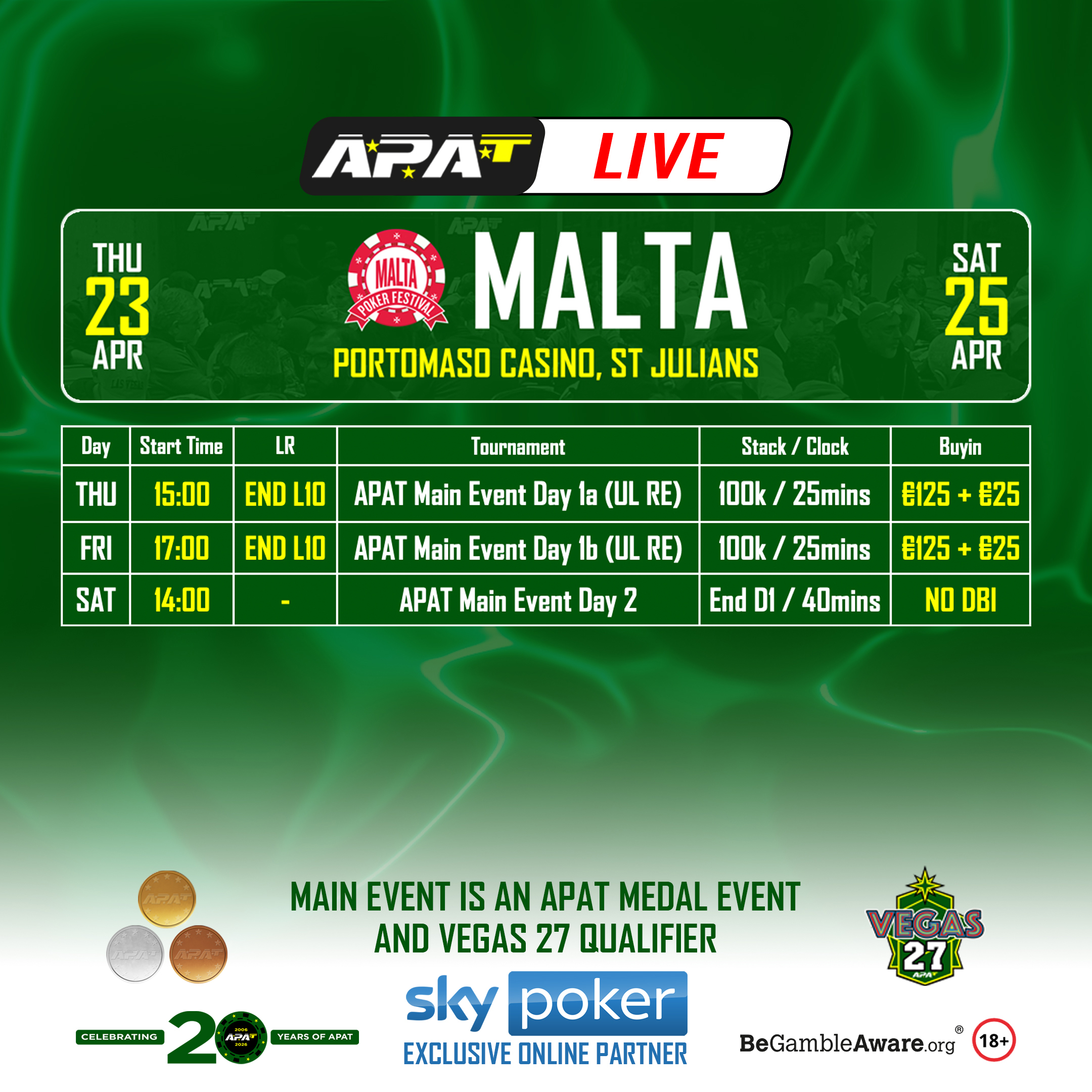 WIN A $10,000 VEGAS BANKROLL FLIGHTS & HOTEL INCLUDED LIVE SCHEDULE ONLINE SCHEDULE VEGAS 27 INFO NEXT VEGAS 27 QUALIFYING EVENT UPCOMING EVENTS Join Our Mailing List - Membership is FREE Your e-mail address is only used to send members our newsletter and information about the activities of APAT. You can always use the unsubscribe link included in the newsletter. Email Address* FIRST NAME* LAST NAME* * Required Information I accept the APAT.com terms and conditions