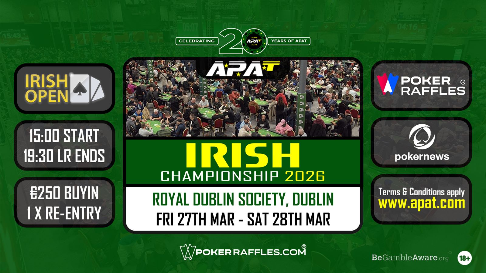 APAT returns to Ireland to co-host the APAT Irish Championship with the Irish Poker Open, with APAT hosting the 2-Day APAT Championship event on Fri 27th and Sat 28th Mar.