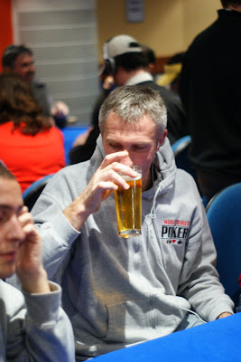 A King on the flop, a 5 on the turn at which point Pat apologises to Jurgen, before the "inevitable" 5 fell on the river. Jurgen took his beat well and Pat was very gracious about it, but the German looked a little dumbstruck for a couple of hands.